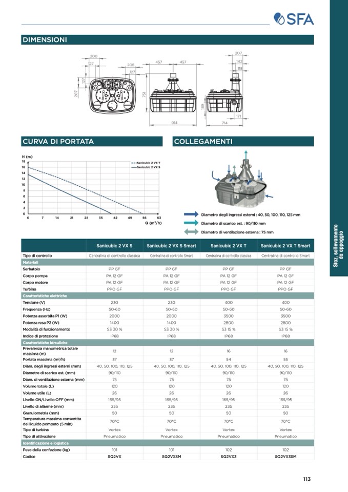 Diametro degli ingressi esterni : 40, 50, 100, 110, 125 mm