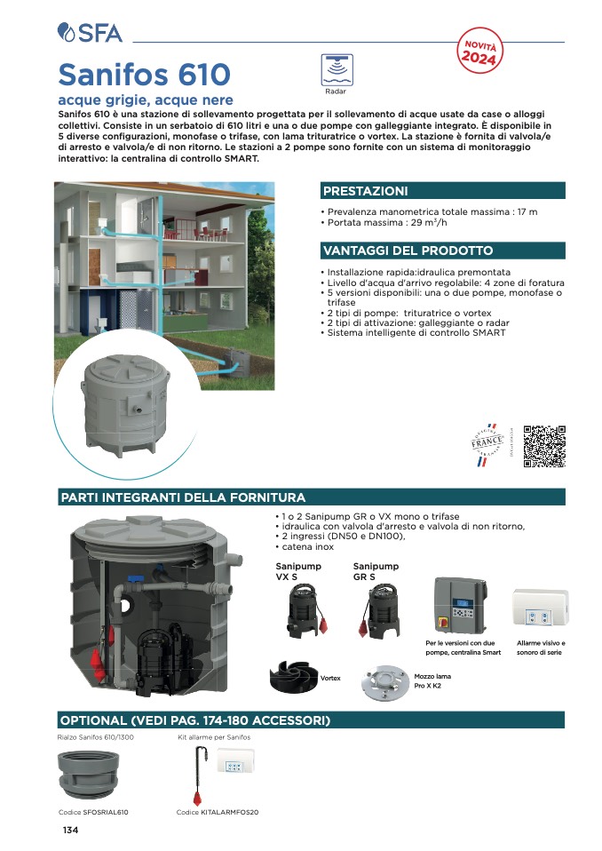 collettivi. Consiste in un serbatoio di 610 litri e una o due pompe con galleggiante integrato. È disponibile in