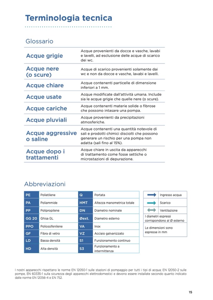 pompe, EN 60335-1 sulla sicurezza degli apparecchi elettrodomestici e devono essere installate secondo quanto indicato