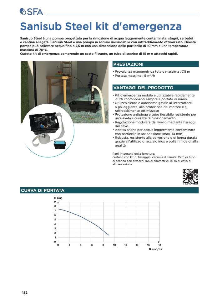 e cantine allagate. Sanisub Steel è una pompa in acciaio inossidabile con raffreddamento ottimizzato. Questa
