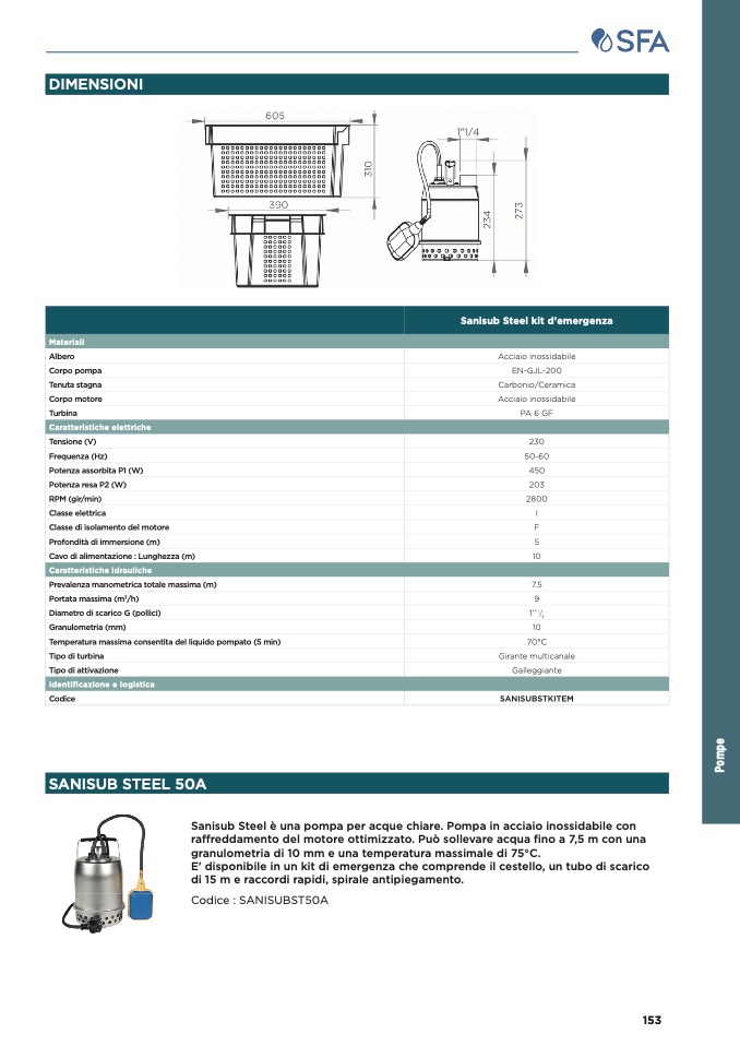 Sanisub Steel è una pompa per acque chiare. Pompa in acciaio inossidabile con