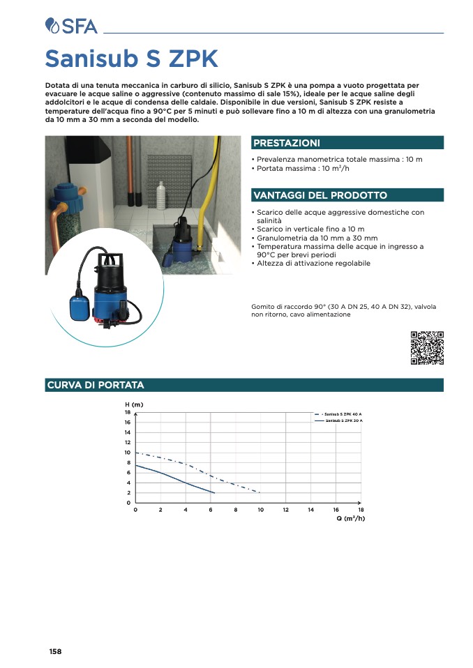 Dotata di una tenuta meccanica in carburo di silicio, Sanisub S ZPK