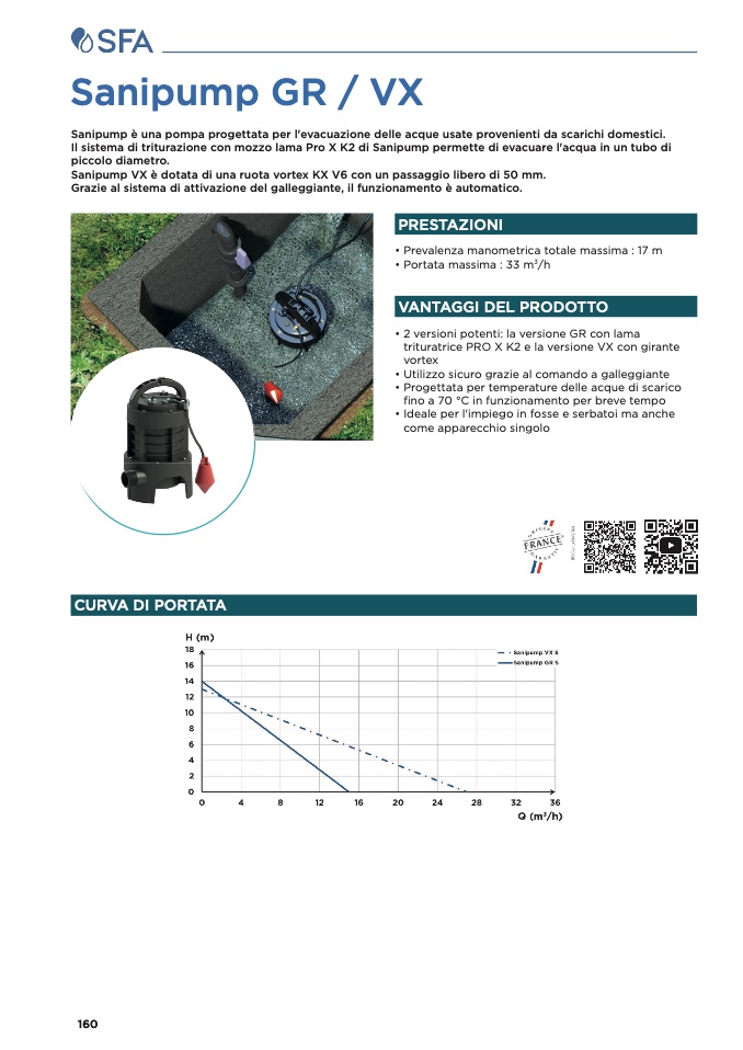 Sanipump VX è dotata di una ruota vortex KX V6 con un passaggio libero di 50 mm.
