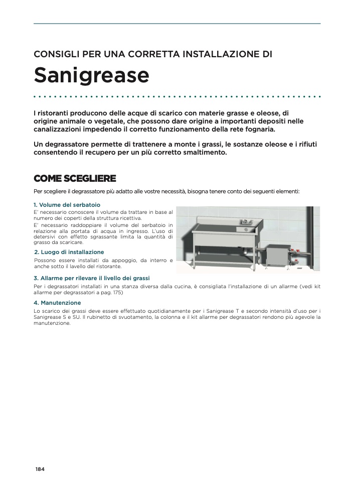 ffettuato quotidianamente per i Sanigrease T e secondo intensità d’uso per i