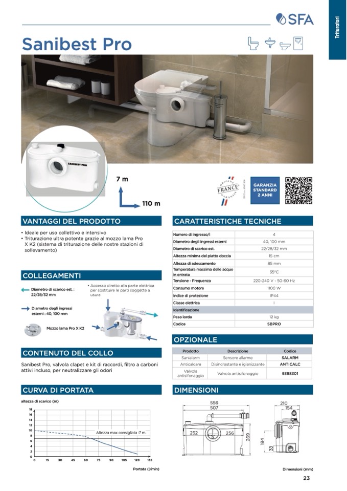Sanibest Pro, valvola clapet e kit di raccordi, filtro a carboni