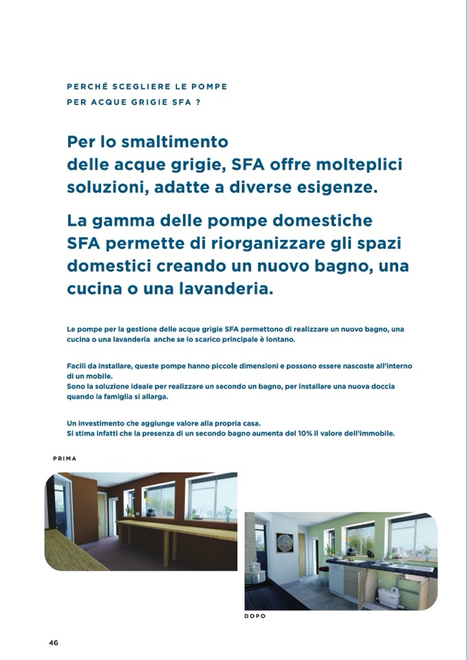 Le pompe per la gestione delle acque grigie SFA permettono di realizzare un nuovo bagno, una