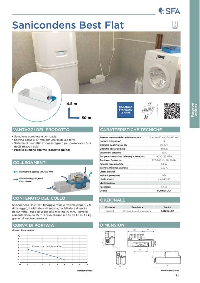 Sanicondens Best Flat, fissaggio murale, valvola clapet , viti