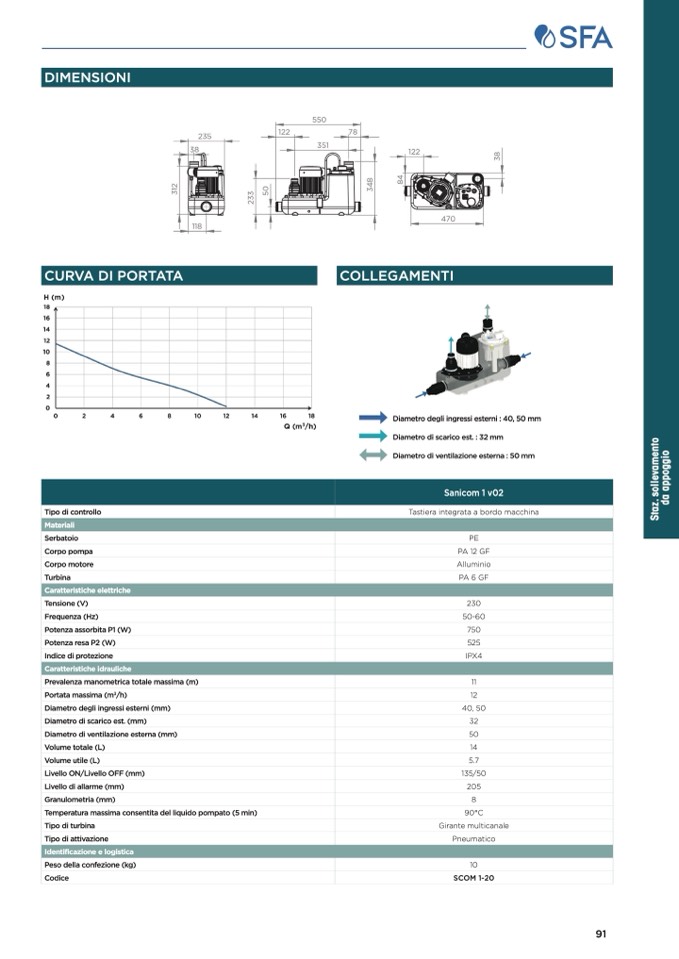 Diametro degli ingressi esterni : 40, 50 mm