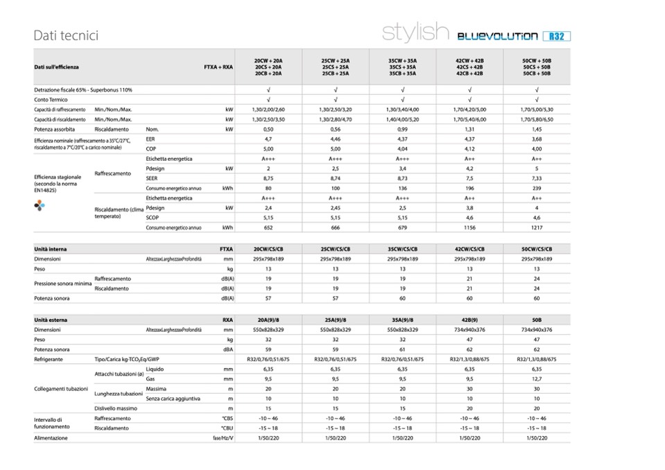 riscaldamento a 7°C/20°C a carico nominale)