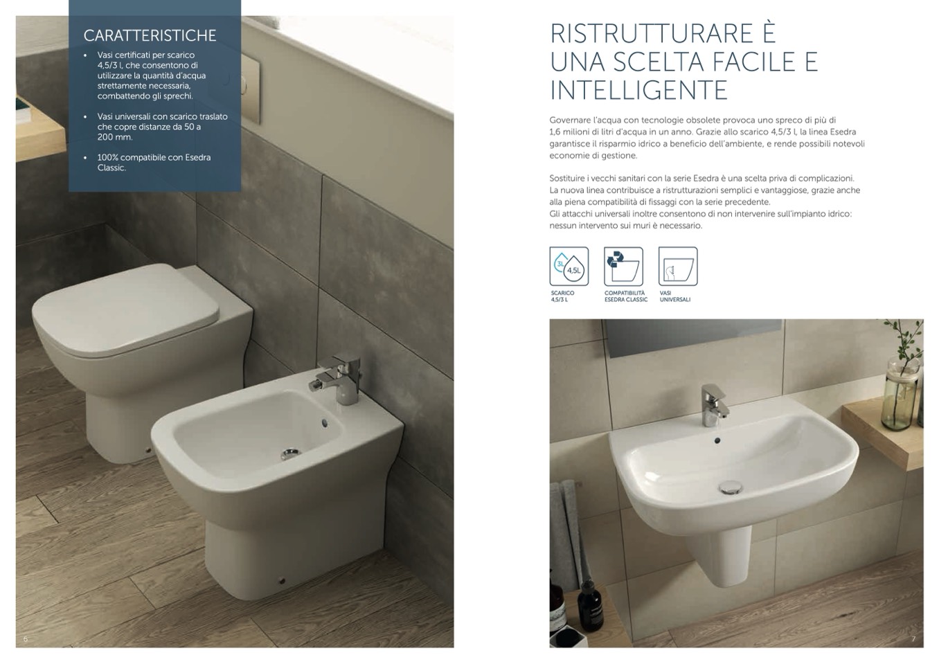 1,6 milioni di litri d’acqua in un anno. Grazie allo scarico 4,5/3 l, la linea Esedra