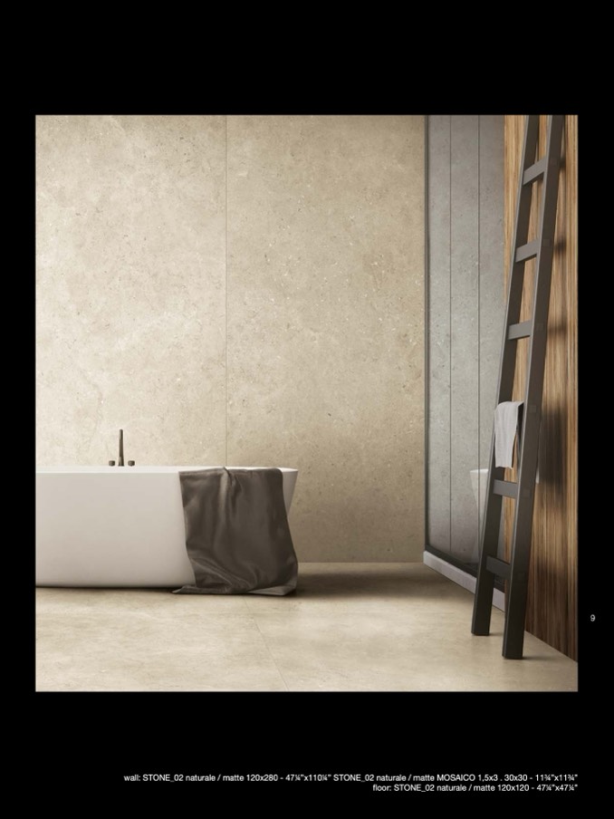 wall: STONE_02 naturale / matte 120x280 - 4714”x1104” STONE_02 naturale / matte MOSAICO 1,5x3 . 30x30 - 11p”x11p”