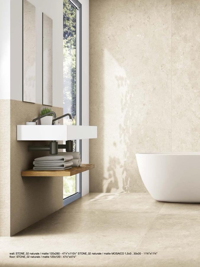 wall: STONE_02 naturale / matte 120x280 - 4714”x1104” STONE_02 naturale / matte MOSAICO 1,5x3 . 30x30 - 11p”x11p”