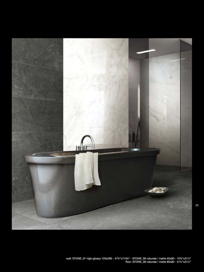 wall: STONE_01 high-glossy 120x280 - 474”x1104” - STONE_06 naturale / matte 40x80 - 15p”x312”