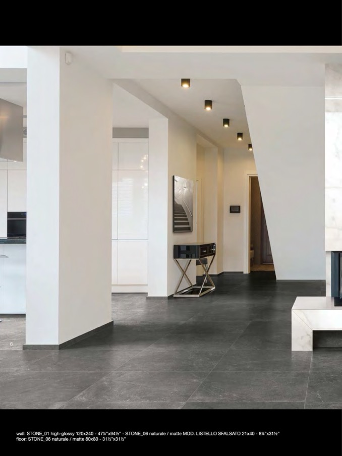 wall: STONE_01 high-glossy 120x240 - 474”x942” - STONE_06 naturale / matte MOD. LISTELLO SFALSATO 21x40 - 84”x312”
