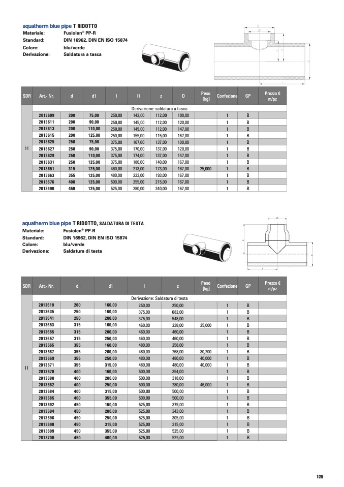 aquatherm blue pipe T RIDOTTO