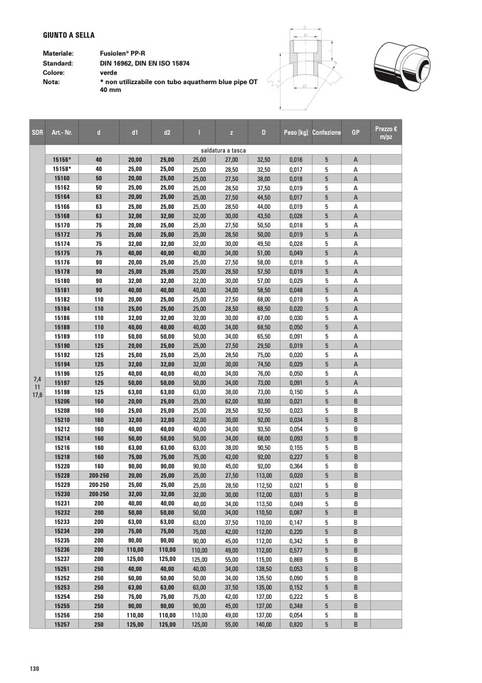 * non utilizzabile con tubo aquatherm blue pipe OT