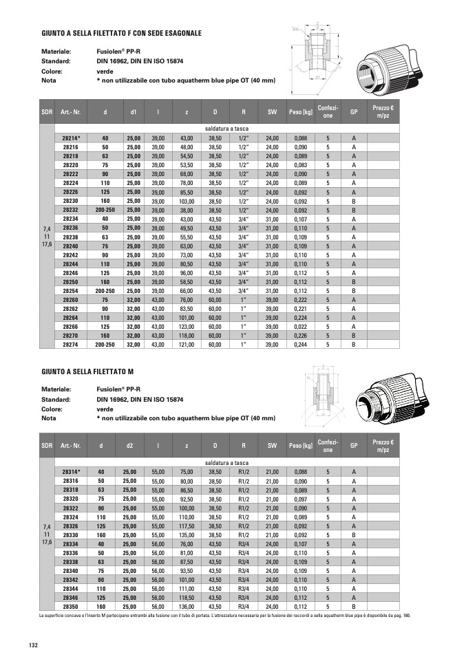 * non utilizzabile con tubo aquatherm blue pipe OT (40 mm)