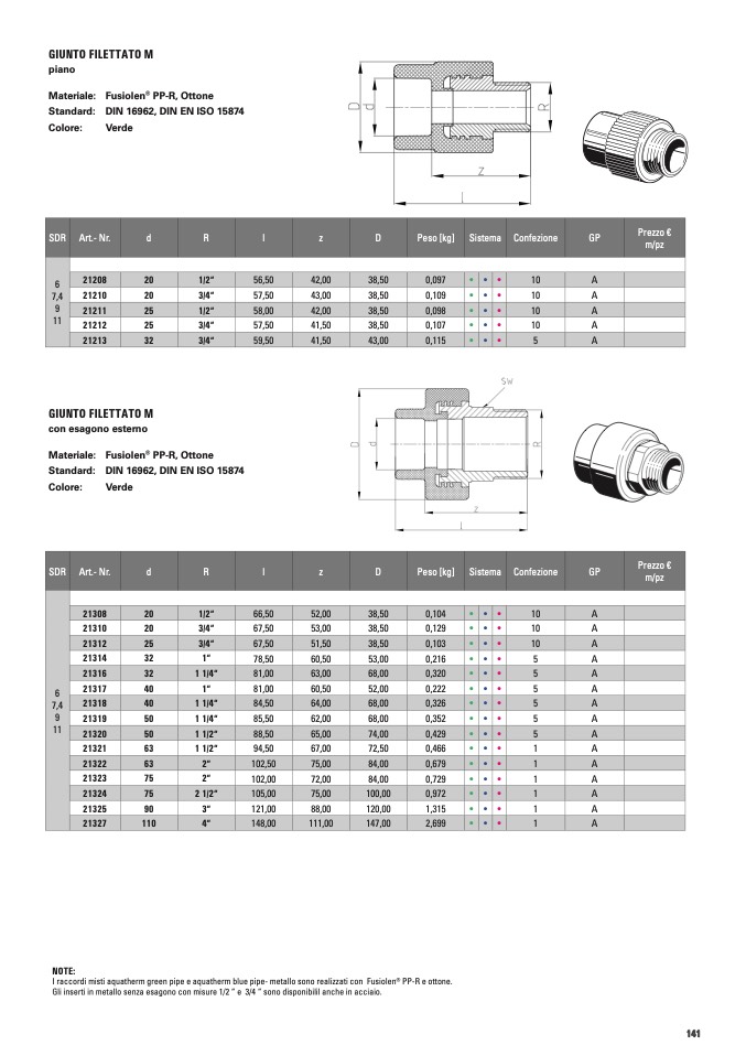 I raccordi misti aquatherm green pipe e aquatherm blue pipe- metallo sono realizzati con Fusiolen