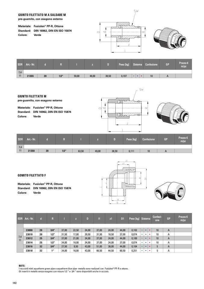 I raccordi misti aquatherm green pipe e aquatherm blue pipe- metallo sono realizzati con Fusiolen