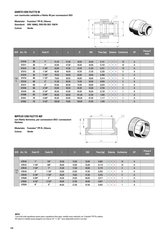 I raccordi misti aquatherm green pipe e aquatherm blue pipe- metallo sono realizzati con Fusiolen