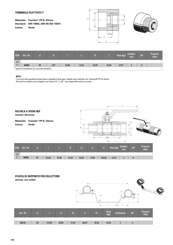 I raccordi misti aquatherm green pipe e aquatherm blue pipe- metallo sono realizzati con Fusiolen® PP-R e ottone.