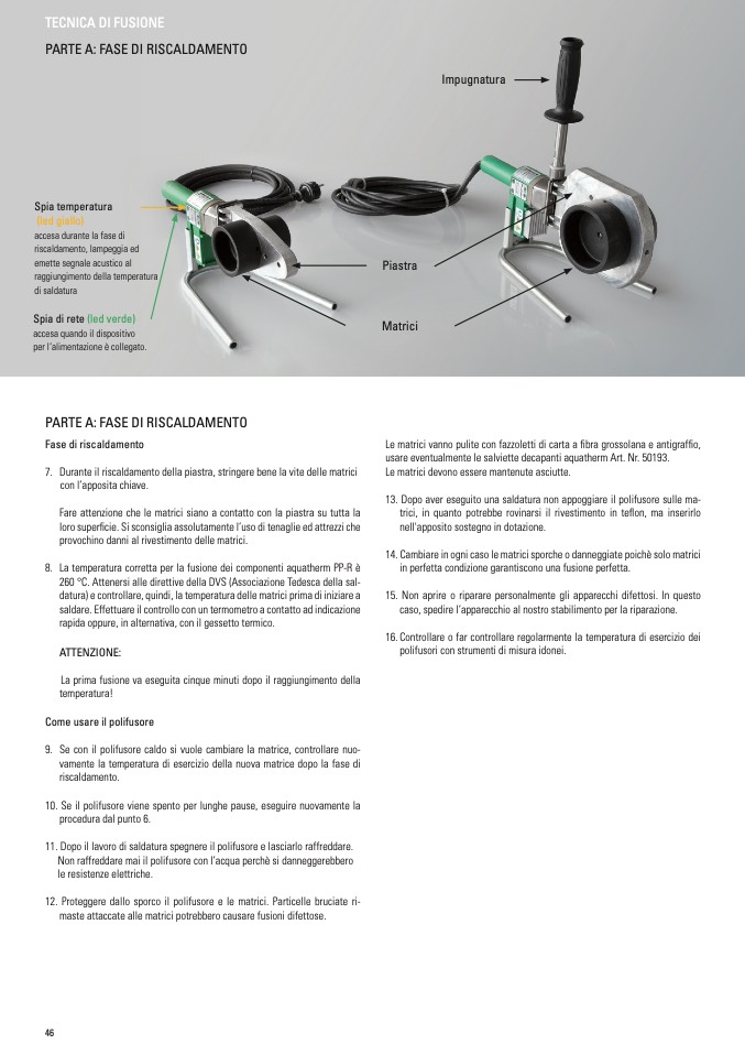 13. Dopo aver eseguito una saldatura non appoggiare il polifusore sulle ma-