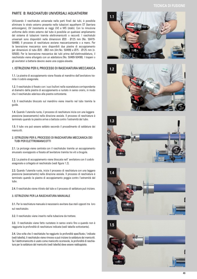 (vedi tabella), il raschiatubo viene rimosso e può iniziare la saldatura dei manicotti.