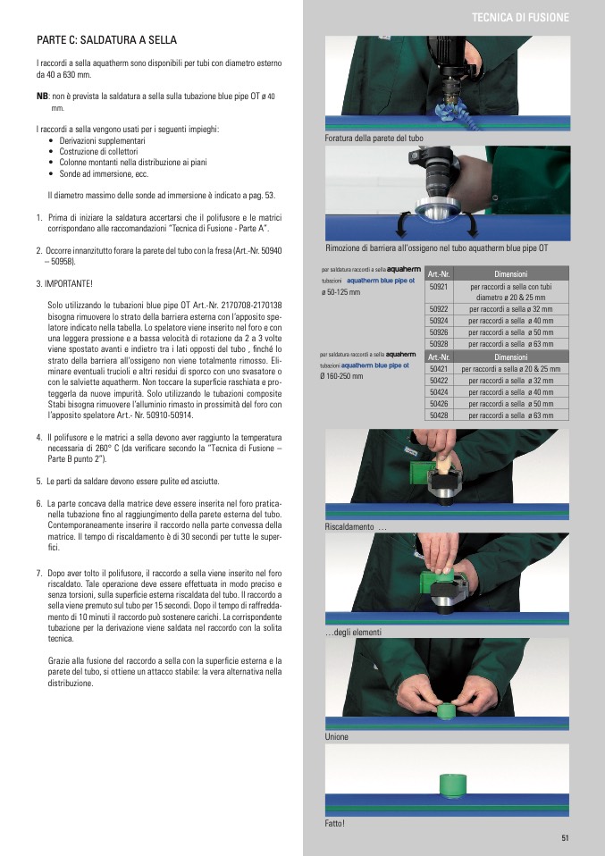 NB: non è prevista la saldatura a sella sulla tubazione blue pipe OT ø 40
