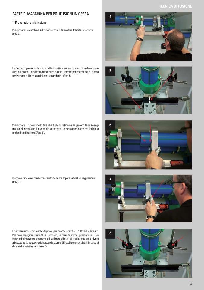 Posizionare la macchina sul tubo/ raccordo da saldare tramite le torrette.