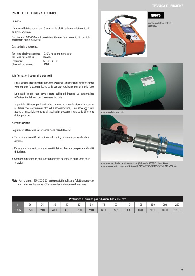 Nota: Per i diametri 160-200-250 non è possibile utilizzare l’elettromanicotto