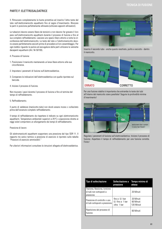 Il tempo di raffreddamento da rispettare è indicato su ogni elettromanicotto