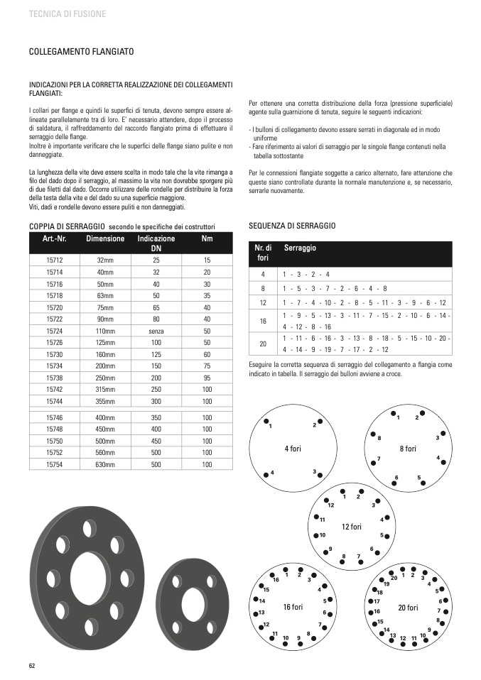 - Fare riferimento ai valori di serraggio per le singole flange contenuti nella