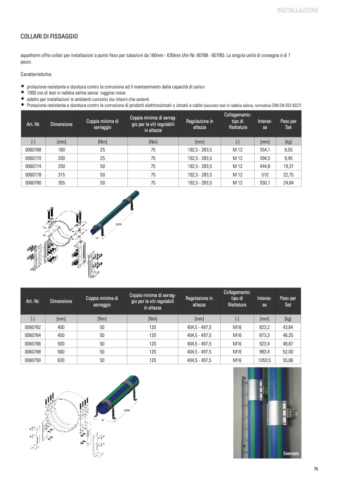 aquatherm offre collari per installazioni a punto fisso per tubazioni da 160mm - 630mm (Art-Nr. 60768 - 60790). La singola unità di consegna è di 1