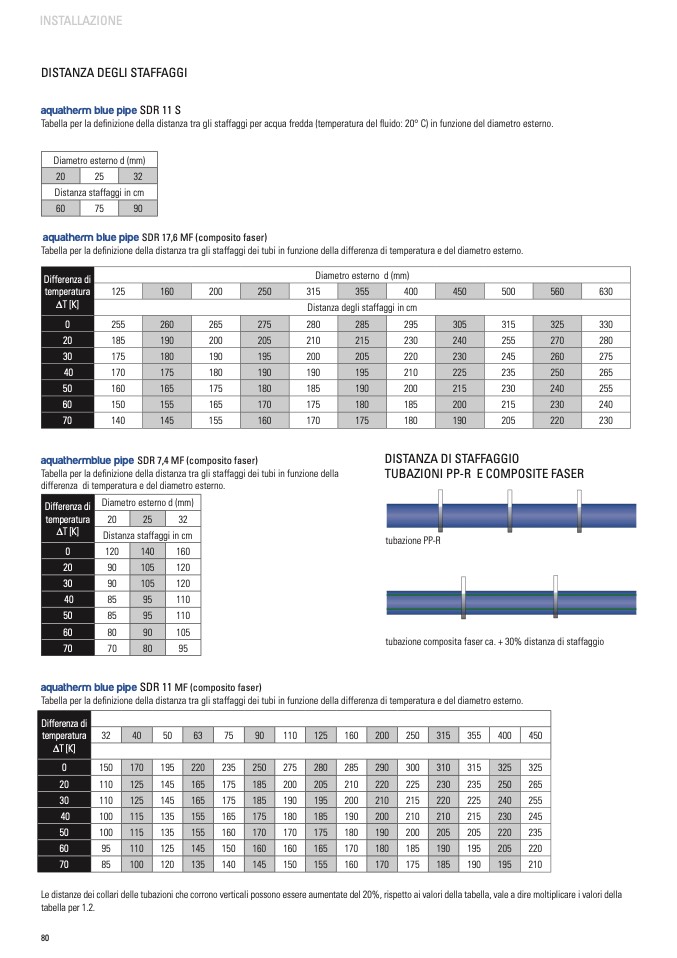 tubazione composita faser ca. + 30% distanza di staffaggio
