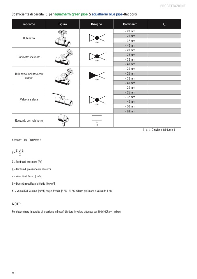 z = Perdita di pressione dei raccordi