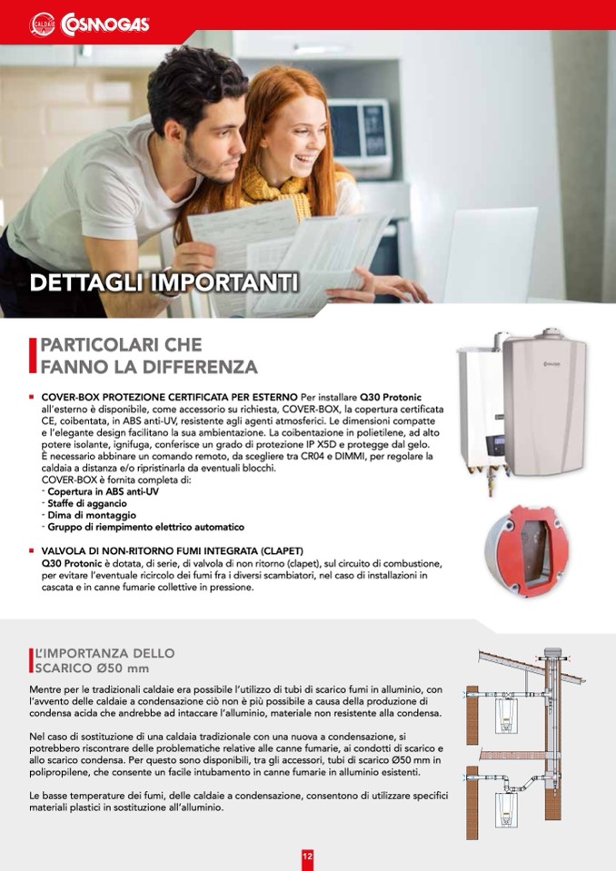 Q30 Protonic è dotata, di serie, di valvola di non ritorno (clapet), sul circuito di combustione,
