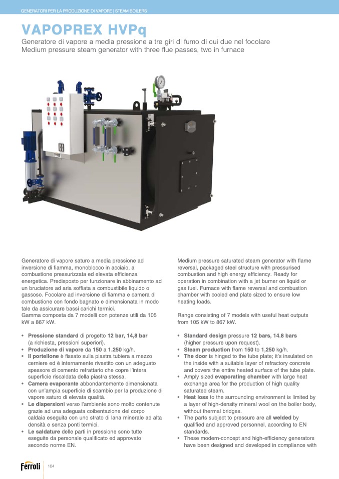 GENERATORI PER LA PRODUZIONE DI VAPORE | STEAM BOILERS