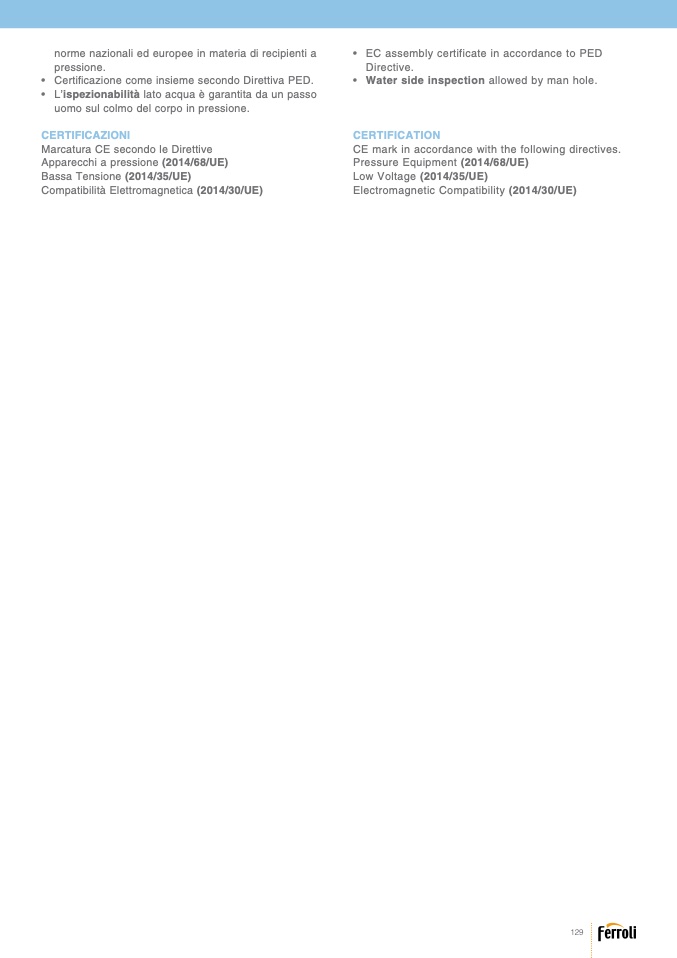 • Certificazione come insieme secondo Direttiva PED.