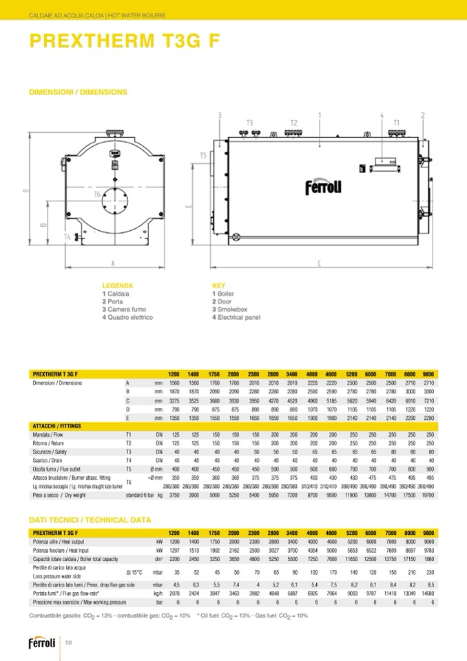 Combustibile gasolio: CO2 = 13% - combustibile gas: CO2 = 10% * Oil fuel: CO2 = 13% - Gas fuel: CO2 = 10%