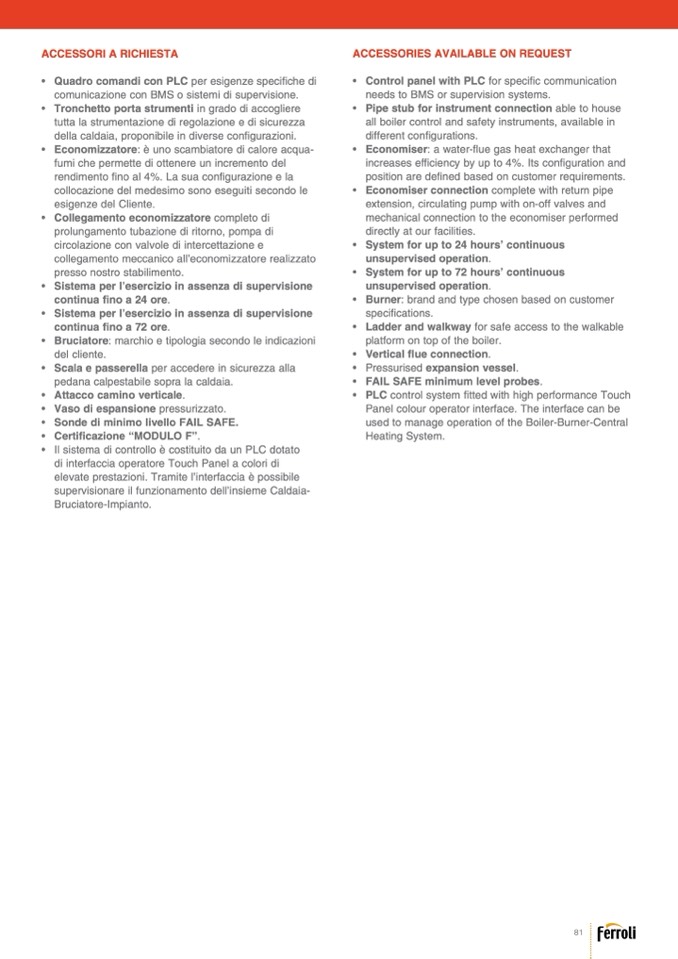 della caldaia, proponibile in diverse configurazioni.