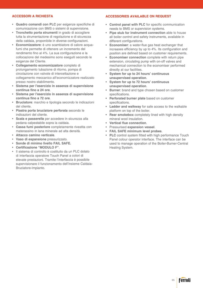 della caldaia, proponibile in diverse configurazioni.