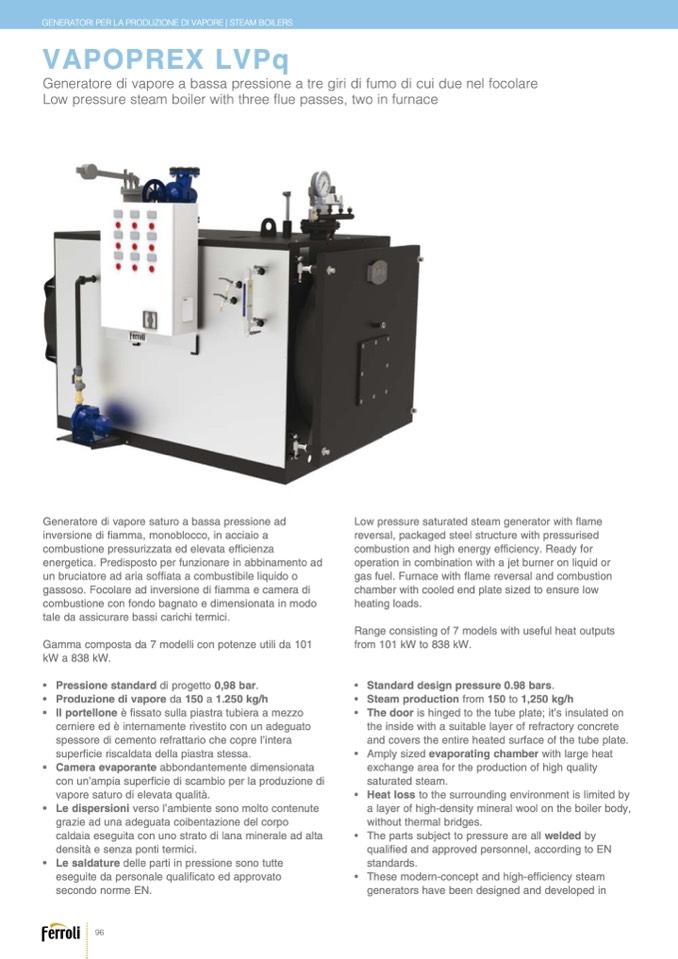 GENERATORI PER LA PRODUZIONE DI VAPORE | STEAM BOILERS