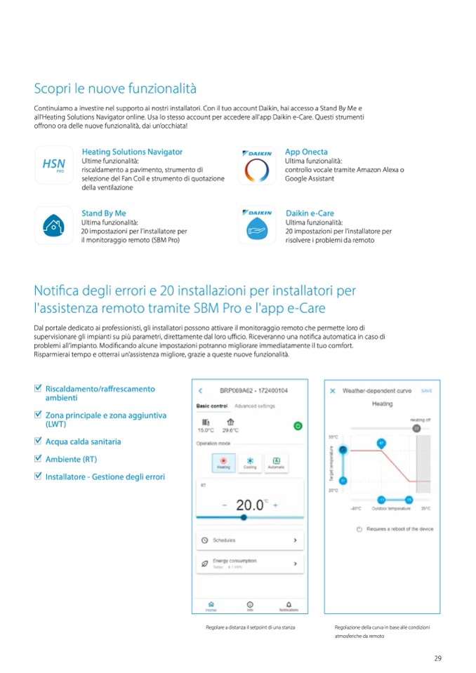 all’Heating Solutions Navigator online. Usa lo stesso account per accedere all'app Daikin e-Care. Questi strumenti