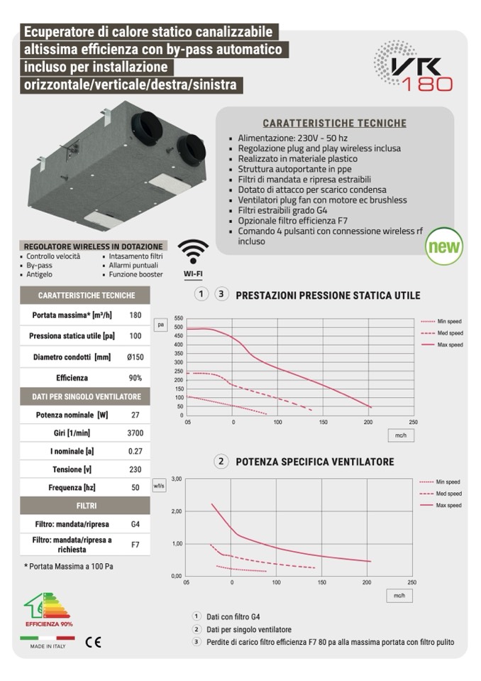 Ecuperatore di calore statico canalizzabile