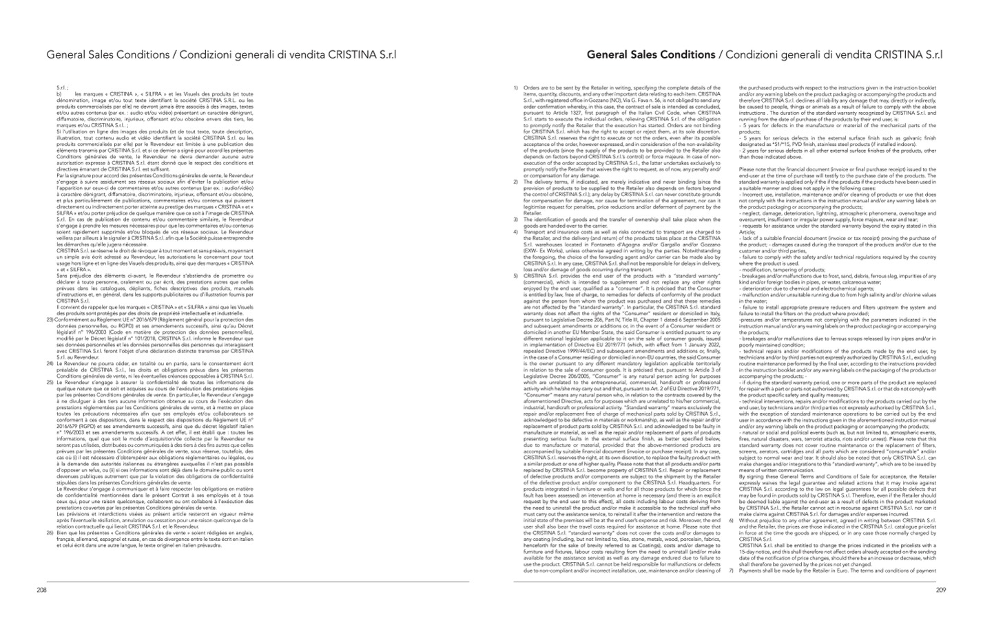 subject to normal wear and tear. It should also be noted that only CRISTINA S.r.l. can