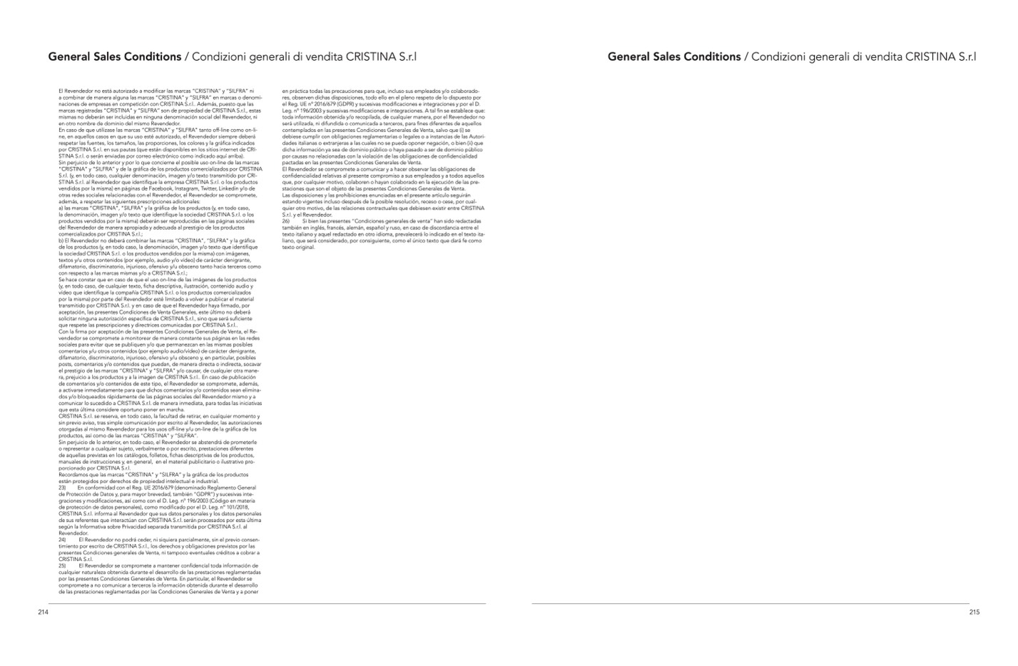 ra, prejuicio a los productos y a la imagen de CRISTINA S.r.l.. En caso de publicaci