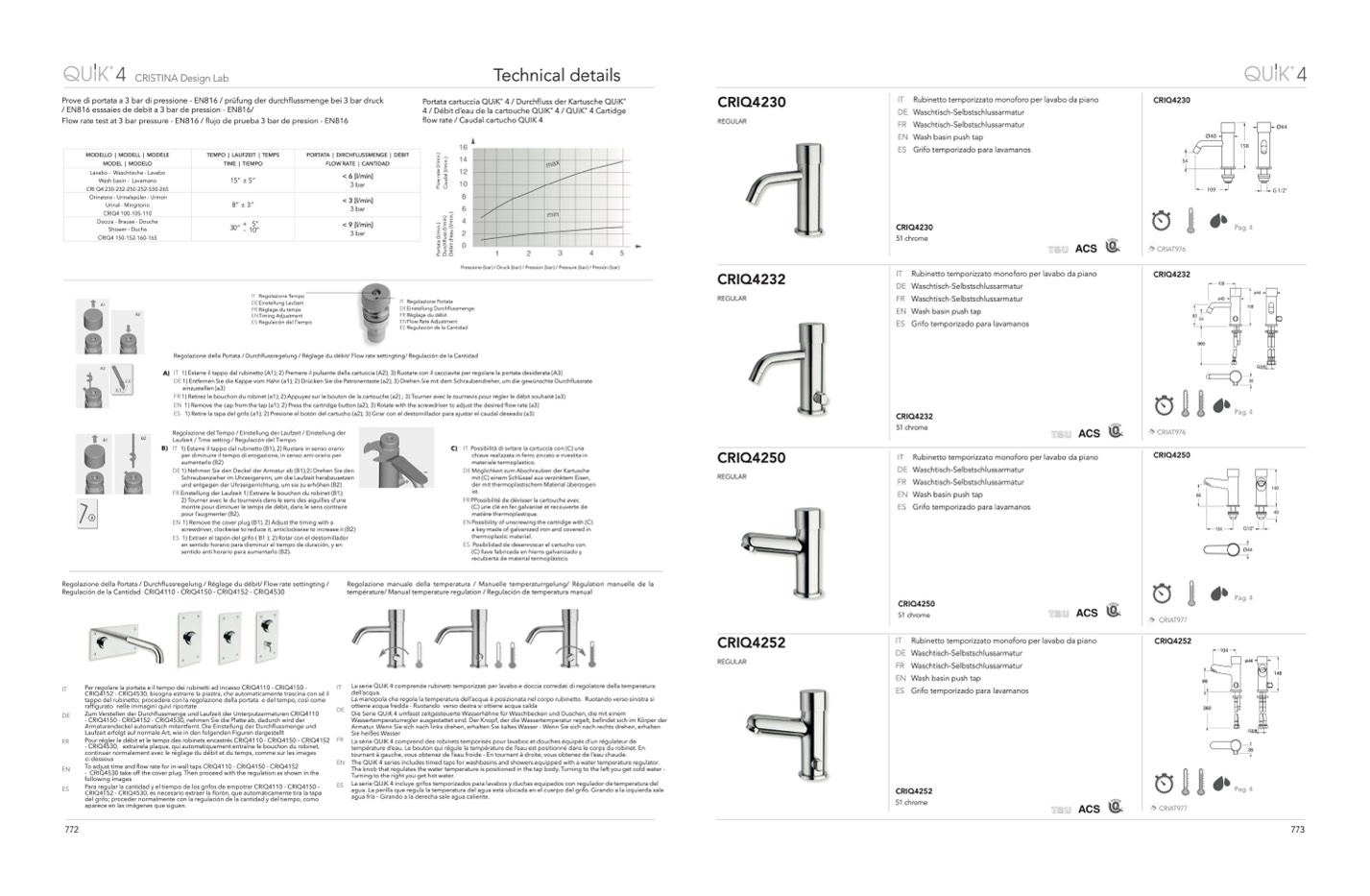 flow rate for in-wall taps CRIQ4110 - CRIQ4150 - CRIQ4152