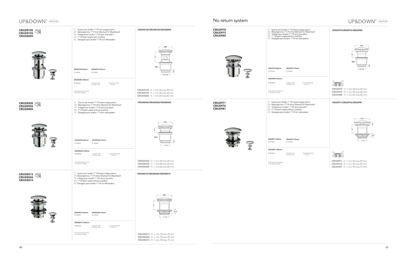 H. = min.45-max.60 mm