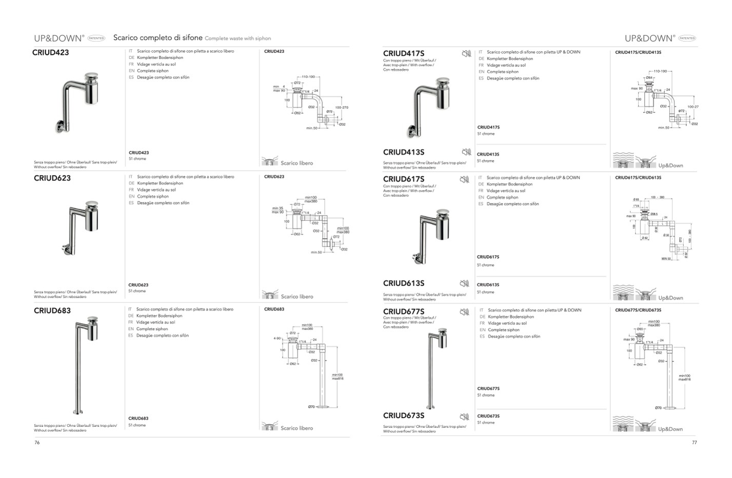 IT Scarico completo di sifone con piletta UP & DOWN