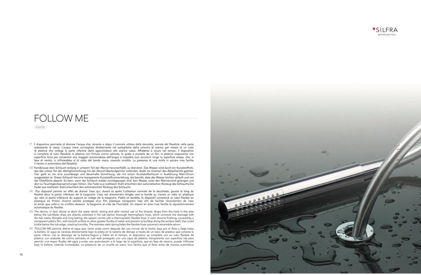 ES FOLLOW ME permite drenar el agua que, tanto antes como después del uso normal de la ducha, baja por el flexo y llega hasta